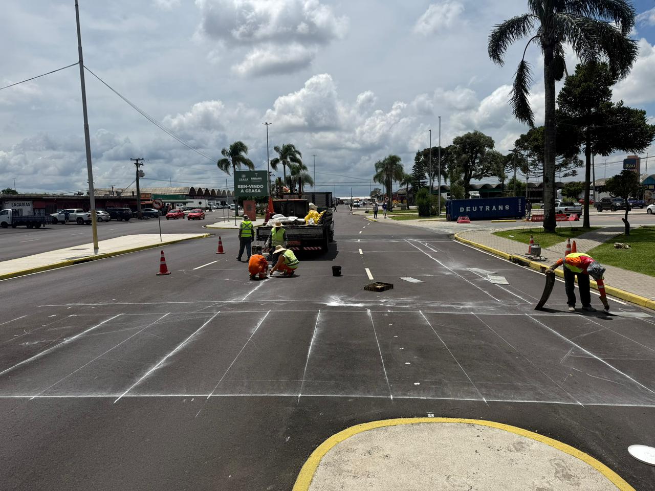As obras de recuperação das vias internas da Ceasa Paraná, na Unidade de Curitiba, entram na reta final e já somam 90% de execução. O projeto integra um pacote de investimentos que ultrapassa R$ 11 milhões, com recursos oriundos do Governo do Estado. Com a maior parte dos serviços concluída, a etapa atual concentra-se na implantação da sinalização horizontal e vertical, que vai organizar o tráfego interno e reforçar a segurança dos trabalhadores, clientes e motoristas que circulam pela unidade.