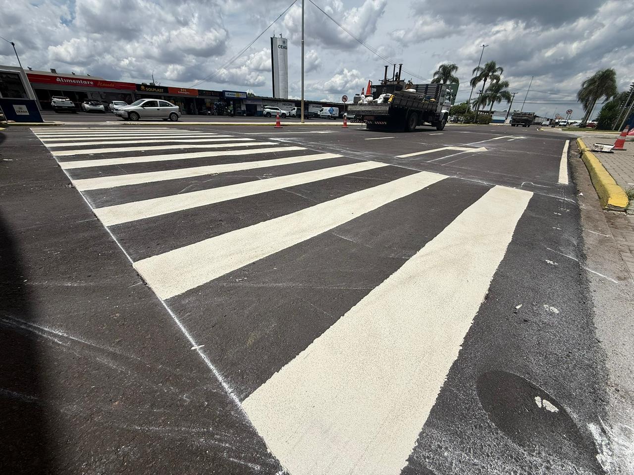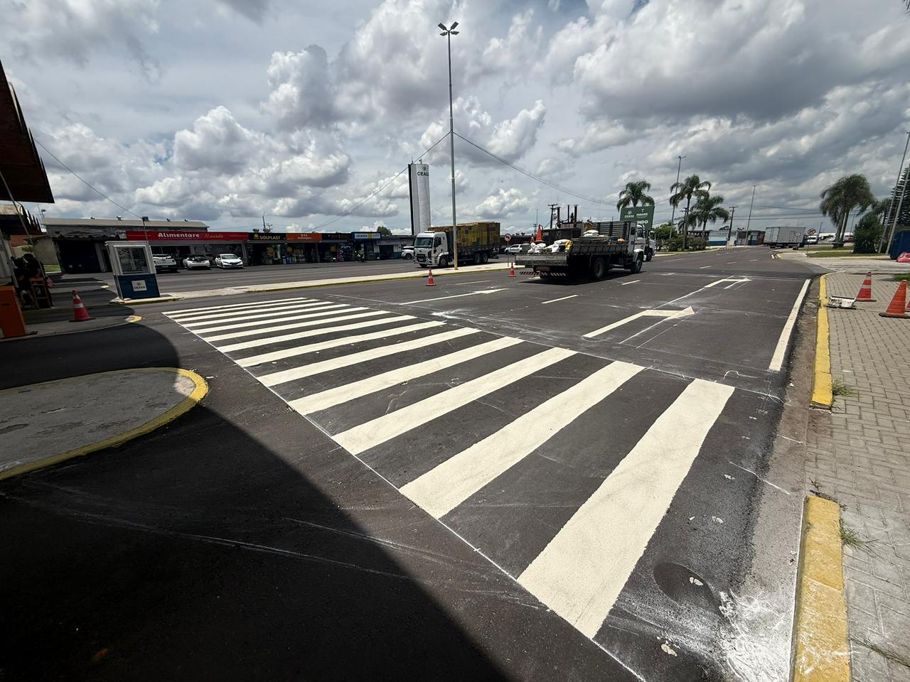 Trabalhos já somam 90% de execução. Com a maior parte dos serviços concluída, a etapa atual concentra-se na implantação da sinalização horizontal e vertical, que vai organizar o tráfego interno e reforçar a segurança dos trabalhadores, clientes e motoristas que circulam pela unidade.