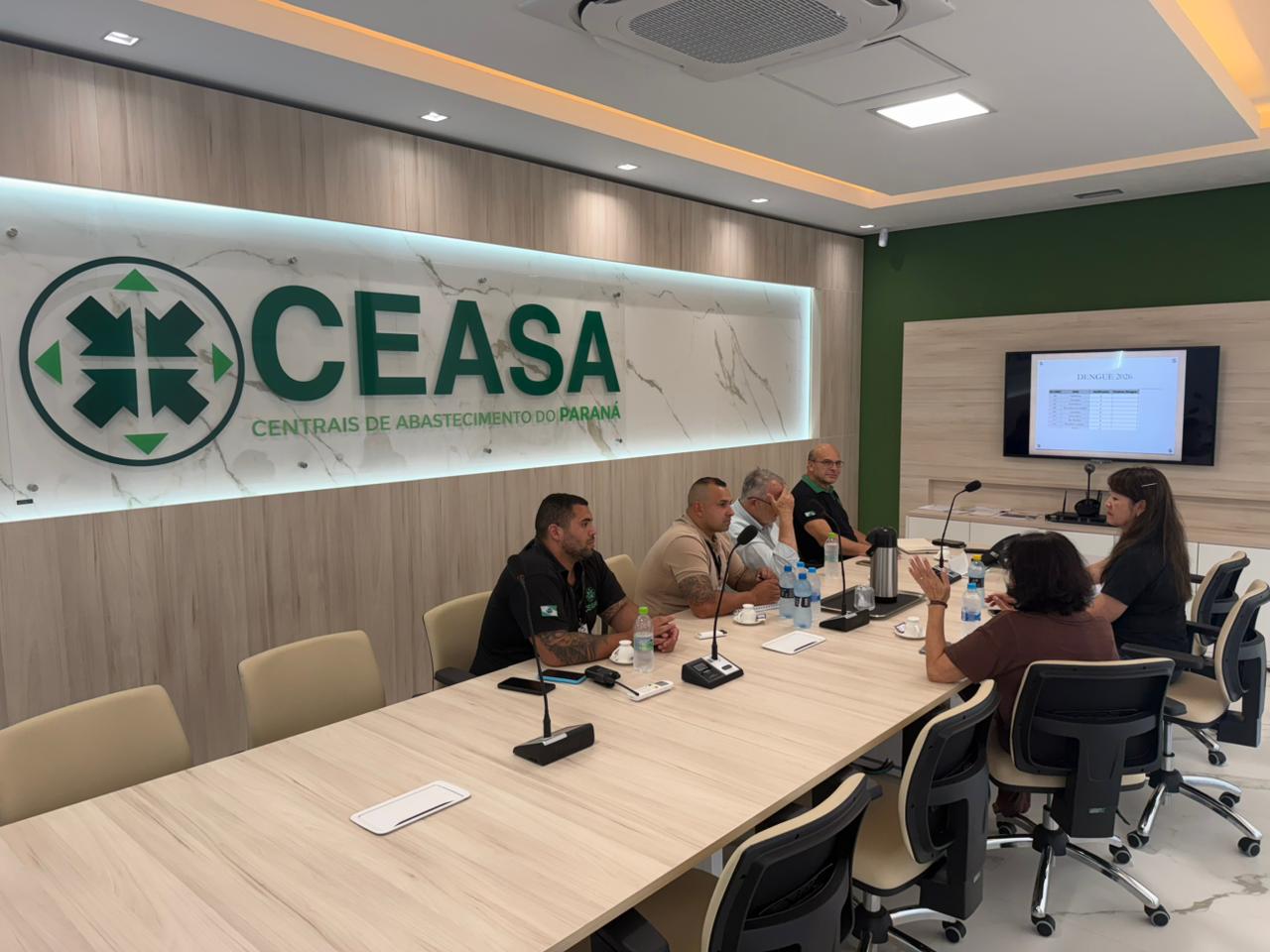 A Ceasa Paraná recebeu nesta semana, na sua Unidade Atacadista de Curitiba, a equipe da Vigilância Sanitária (Visa), do Distrito Sanitário do Tatuquara, da Secretaria Municipal de Saúde para uma reunião voltada ao fortalecimento das ações de prevenção e combate à dengue. O encontro destacou a importância da parceria entre a Ceasa e os órgãos de saúde na promoção de um ambiente mais seguro para trabalhadores, permissionários, produtores e visitantes.